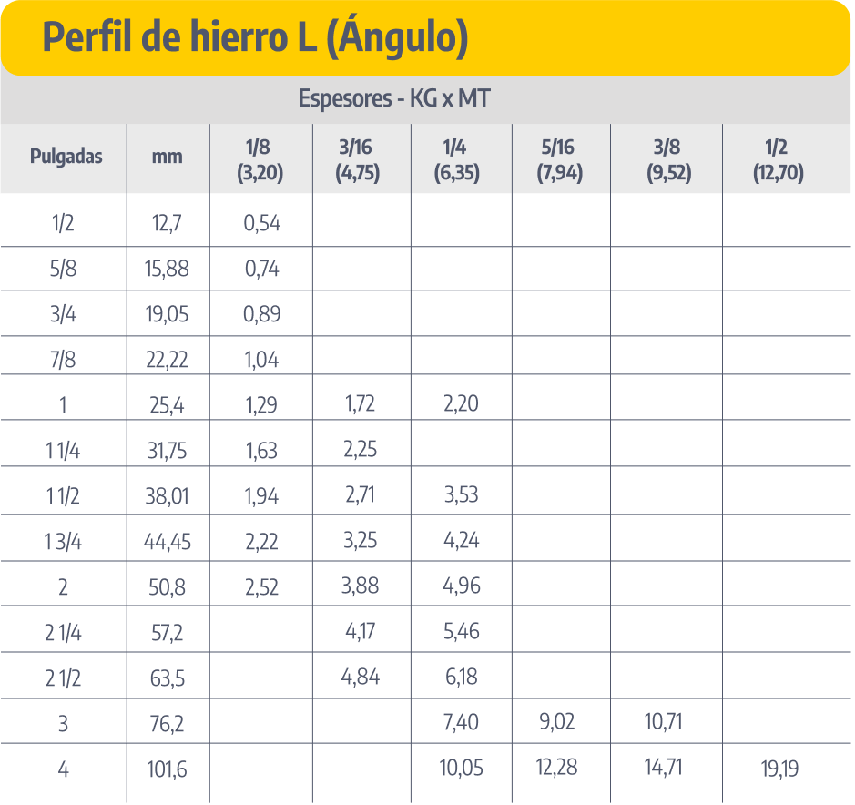 Hierro perfil L (Hierro Angulo-Alas iguales)